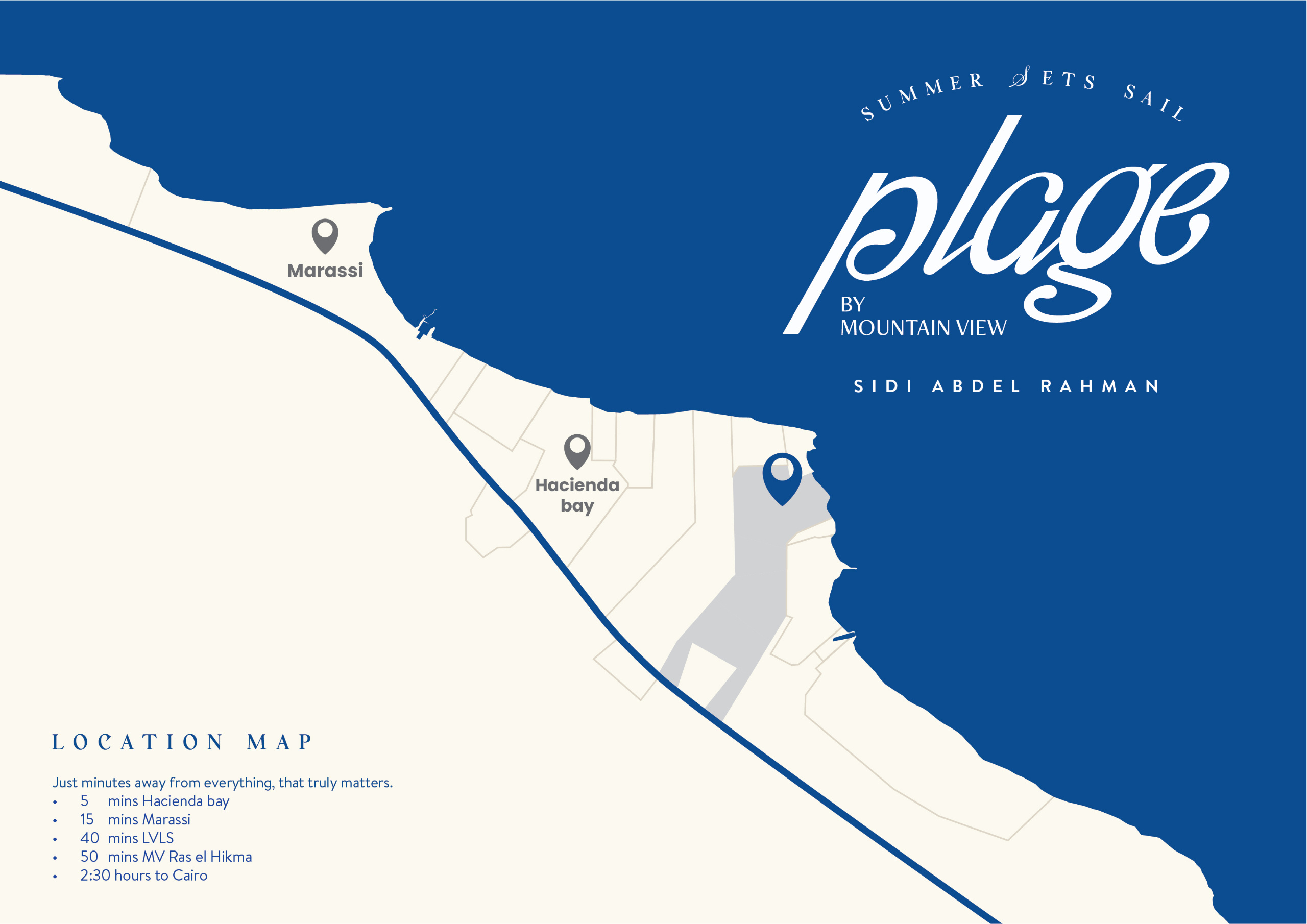 Introducing Wave Plage, a redefined coastal experience in the heart of Plage Sidi Abdelrahman. This exclusive community offers stunning waterfront villas, a private, expansive beachfront, and exclusive access to the Wave Beach Club.From unwinding at the Seafront Hotel to embracing peaceful aquatic experiences, Wave Plage invites you to discover a new way of living by the sea.Welcome to a world where every detail is meticulously crafted to elevate your lifestyle and create unforgettable memories.